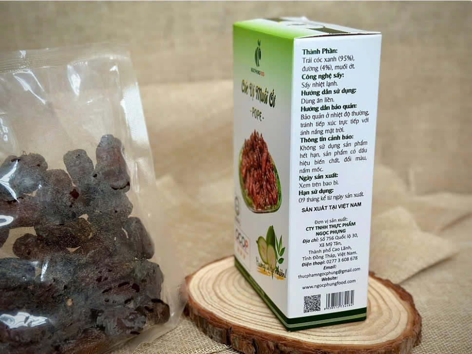 Cóc vị muối ớt POPE được làm từ các nguyên liệu quen thuộc như cóc tươi, muối, ớt và một số gia vị tự nhiên. Những trái cóc được lựa chọn kỹ lưỡng, sau đó chế biến theo quy trình đảm bảo vệ sinh an toàn thực phẩm, giữ được vị chua nhẹ đặc trưng của cóc cùng vị cay mặn vừa phải của muối ớt.